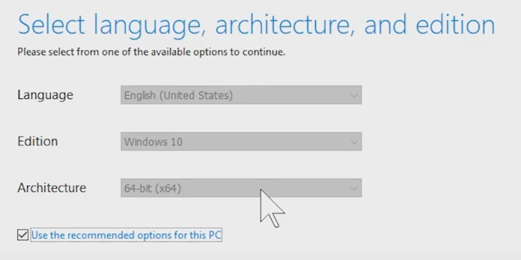 In most cases, these settings are fine, and most people will want Windows x64. If you need something different, you can uncheck the box and choose from the different options in the drop-down menus.